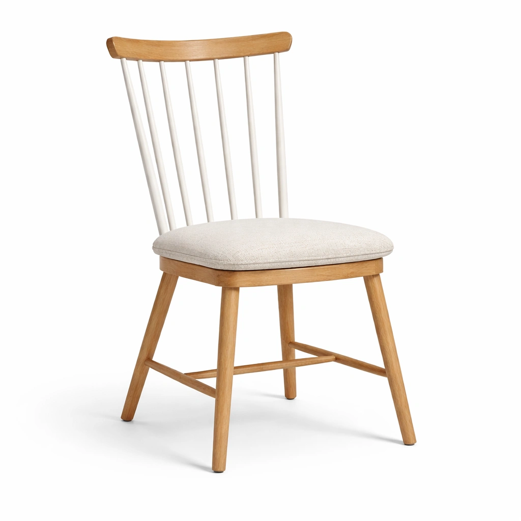 Sillas de comedor de madera y metal con asiento tapizado beige
