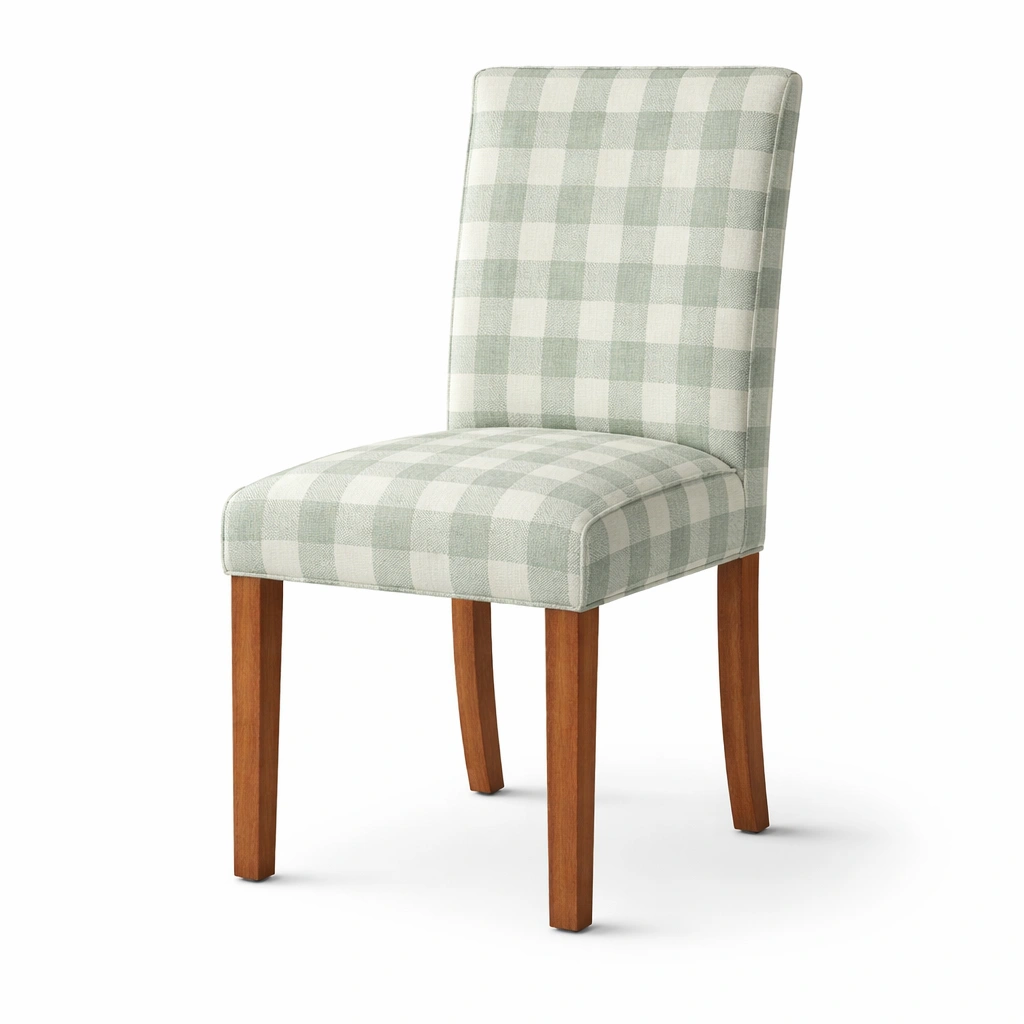 Sillas de comedor de madera y poliéster con cuadros verdes