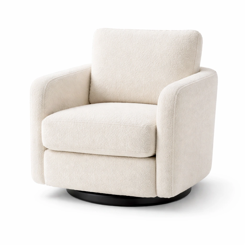 Sillón giratorio de tela bouclé crema